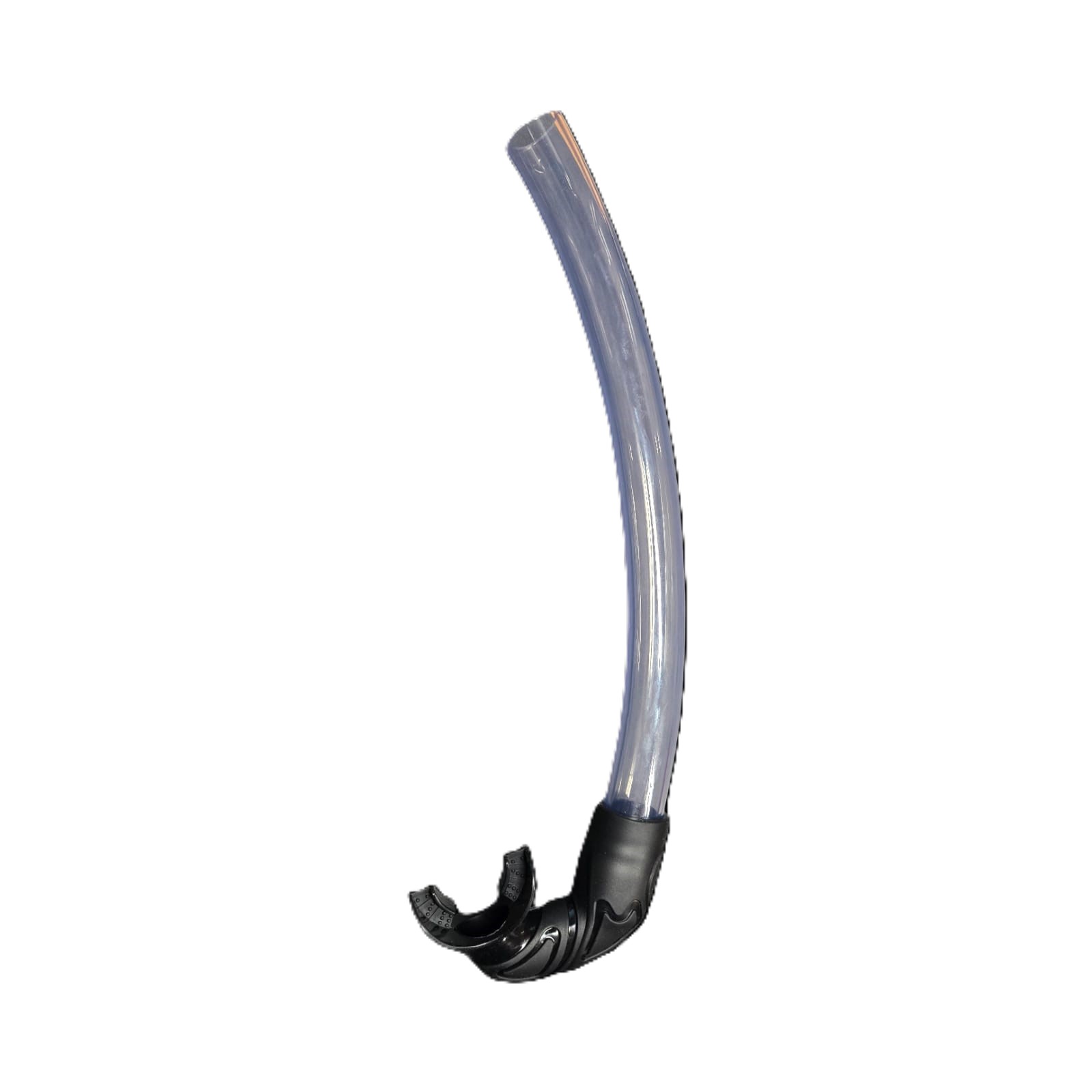 Most of your typical snorkeling snorkels are a bit longer for wavy sea conditions and splash, but for pool sport use you want something more compact that doesn’t waggle about or get stuck in peoples armpits. In fact, we still recommend cutting off a few extra centimetres (to personal preference). So with the shorter length and wider girth you are pushing out a similar volume of water as a “normal” snorkel but you suck in air much faster (dilated aperture improves laminar flow due to an improved surface area to volume ratio) so it takes less effort to take those desperate breaths after a sprint and recover so you can get back on the bottom of the pool quicker.